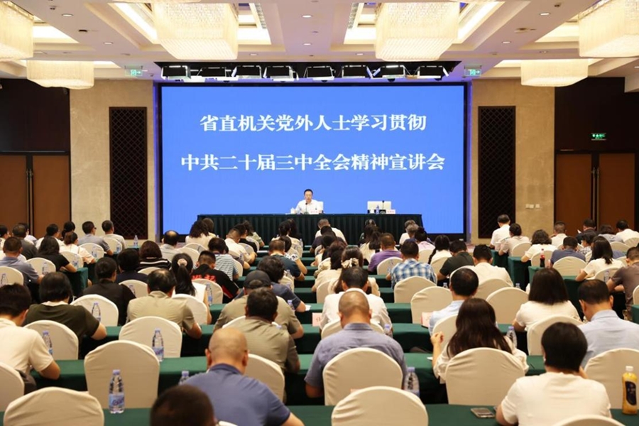 为全面深入学习领会党的二十届三中全会精神,更好引领省直机关党外人士把思想和行动统一到全会精神上来,把智慧和力量凝聚到落实全会确定的各项目标任务上来,按照省委部署要求,9月4日下午,省委省直机关工委举办省直机关党外人士学习贯彻中共二十届三中全会精神宣讲会。省委省直机关工委副书记唐功江围绕全会的重大意义、总体要求、重大举措、根本保证等6个方面向党外人士作宣讲。88个省直部门(单位)206名党外人士参加会议。