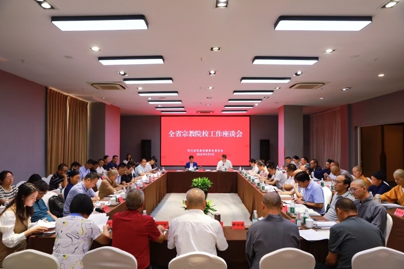 四川尼众佛学院副院长赵霞以“加强学院思政课学科建设、全面从严治校”为主题作了发言,峨眉山佛学院副院长法源以“突出学院办学特色,发挥宗教院校中国化研究基地作用”为主题作了发言,青城山道教学院副院长余朝发以“发挥自身优势、将中华优秀传统文化融入课堂”为主题作了发言,四川天主教神哲学院院长陈功鳌以“坚持学历教育与继续教育同步推进、充分发挥‘三个基地’作用”为主题作了发言,四川神学院院长饶建华以“加强师资队伍建设、提升学院办学质量”为主题作了发言。两位教师代表分别就提升公共课、专业课教学成效,加强相互融合作了发言。成都市、乐山市民宗部门负责同志就履行宗教院校协管职责作了发言。宗教院校参会人员围绕学习党的二十届三中全会精神、习近平总书记关于宗教工作及思政课建设重要指示精神,进一步办好宗教院校,推动院校内涵式发展等进行了座谈讨论。