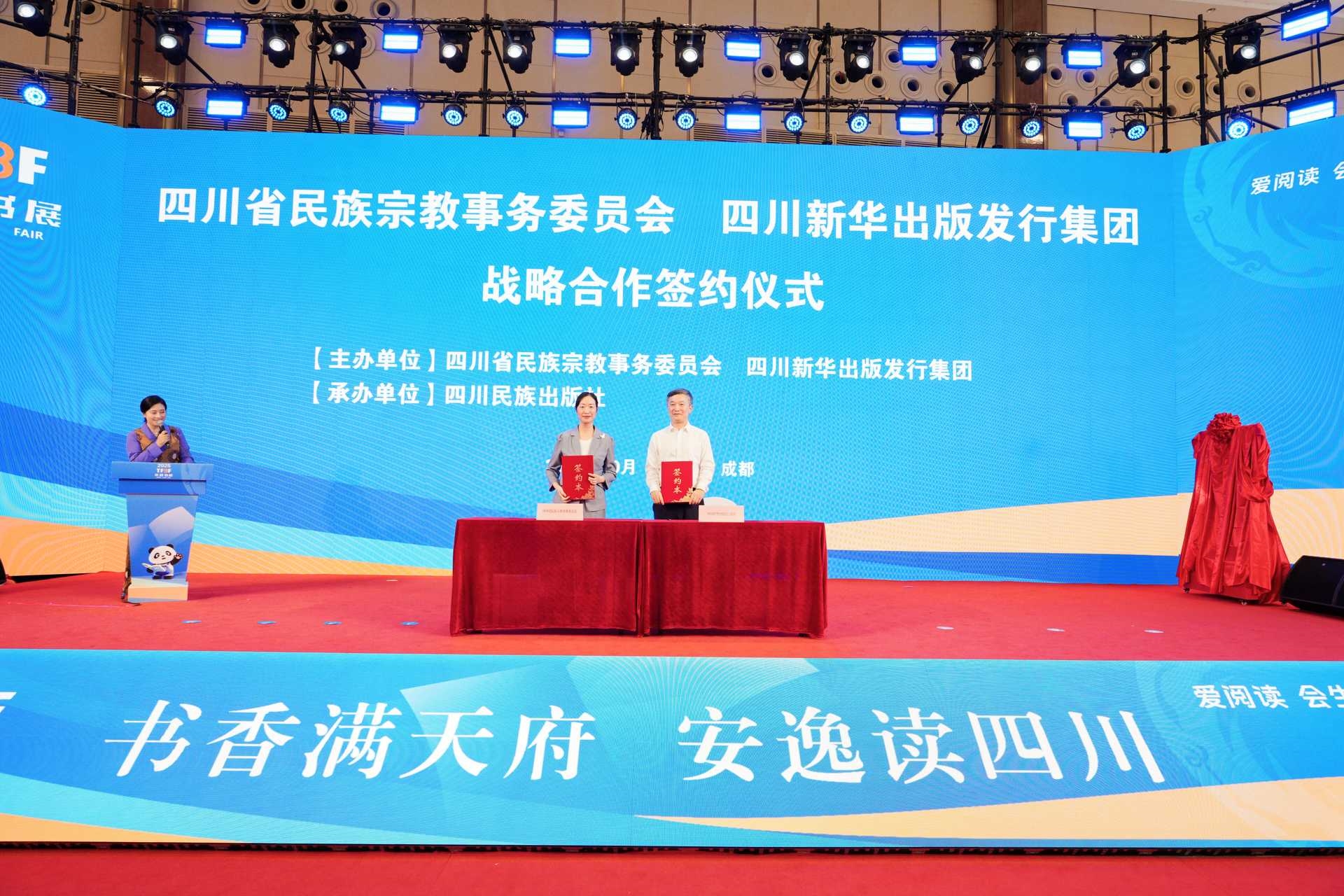 10月17日上午,在天府书展1号活动区,四川省民族宗教事务委员会与四川新华出版发行集团正式签署战略合作协议,并同步举行《雪域天路——通向民族团结幸福之路》新书发布会与《大道长歌》系列图书出版项目启动仪式。