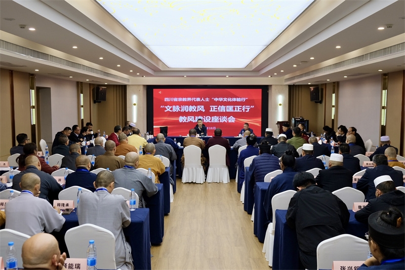 活动期间,在延安召开了四川省宗教界“文脉润教风 正信匡正行”教风建设座谈会,省民族宗教委分管负责同志在会上作讲话,7位宗教界代表人士作了交流发言。会议强调,各宗教要担负起主体责任,自觉推进我国宗教中国化,深度融入博大精深的中华优秀传统文化,不断与社会主义社会相适应;要继承和发扬爱国爱教优良传统,不断增进“五个认同”;要用中华优秀传统文化浸润宗教,不断坚定文化自信;要坚持文脉润教风,不断凝聚清风正气。