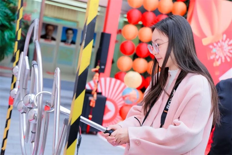 本次活动设置“游戏挑战”“非遗体验”“幸运抽奖”三大板块。在“迎春接福”“抓马得福”“策马奔腾”等游戏项目中,大家争相闯关赢福气,欢呼声、呐喊声交织回荡。在非遗体验区,捏面人、写春联、拓印福字等传统项目,让大家在沉浸式体验中感受中华优秀传统文化的独特魅力。在抽奖区域,便携式家用小电器、定点帮扶村农特产品等奖品相继揭晓,掌声阵阵、喝彩不断,处处洋溢着春日的喜悦。