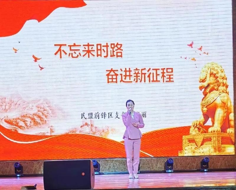 比赛中,选手们以激情昂扬的精神风貌、积极饱满的态度情感全身心投入。选手们的倾情朗诵让在场的观众们深深体会到了民盟先辈们竭诚奋斗的伟岸身影,矢志不渝的坚定意志。在紧锣密鼓的统计分数期间,盟员们共同聆听了盟员伍亚菲演唱的《我爱我的祖国》、全体盟员共同合唱《我们走在复兴路上》,现场气氛热烈。