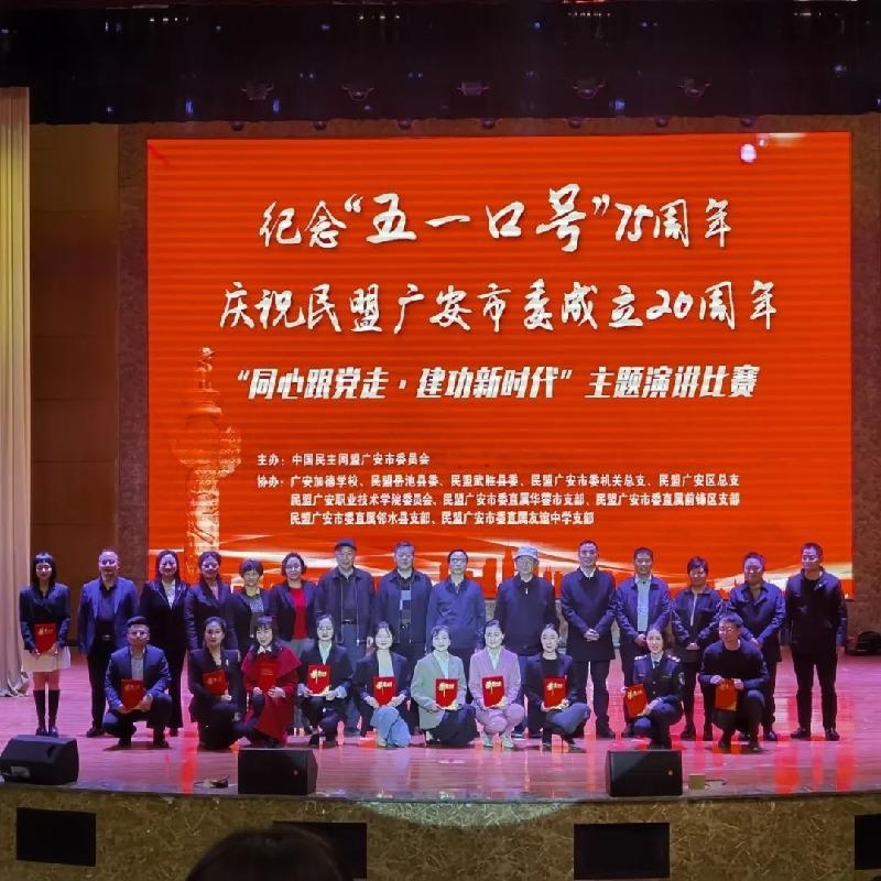 3月30日下午,民盟广安市委举行纪念“五一口号”发布75周年暨庆祝民盟广安市委成立20周年“同心跟党走·建功新时代”主题演讲比赛。民盟广安市委主委贺宗飞,副主委殷云、黄雪兰、罗明轩,以及民盟广安市委原主委袁继林、杜朝俊,原副主委范家立、吕玲等老领导出席活动。