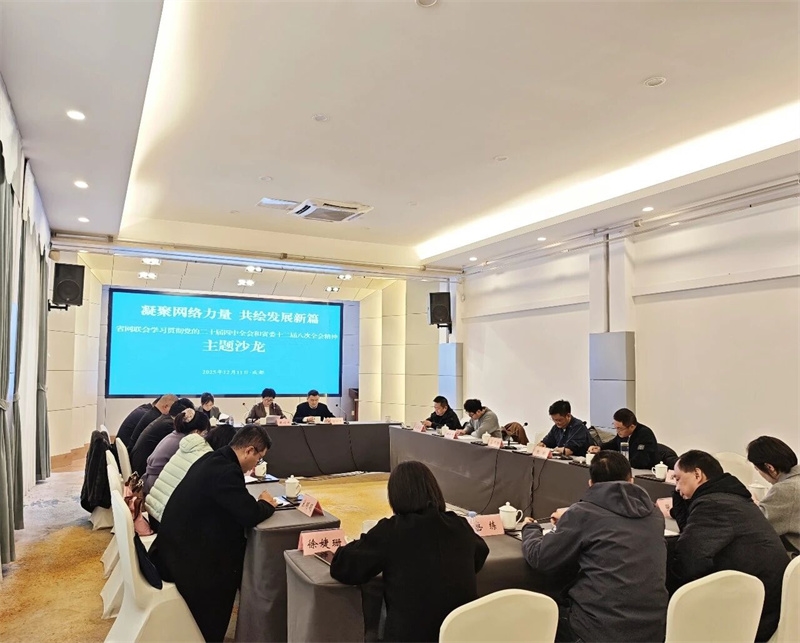 沙龙活动中,与会代表围绕“学习贯彻党的二十届四中全会和省委十二届八次全会精神的心得体会”“网络人士如何在数字赋能、网络文明等领域展现新作为”等议题展开热烈交流。四位来自不同领域的网络代表人士作了主题分享。省网联会副会长、省曲艺家协会主席张旭东以“深学全会精神 守正创新铸魂”为题,系统阐述了曲艺在文化强国建设中的守正创新路径;省政协常委、省政府参事室特约研究员李雨桐结合战略咨询与对外宣传实践,分析了在复杂舆论环境中“坚持党的领导、善于发声、聚焦民生”的工作方法;知名军事时政博主、省网联会常务理事张舰以自媒体人的身份,分享了在“流量与责任”中坚守内容正道、传播正能量的思考与实践;省网联会理事、成都柒八肆文化传媒有限公司董事长温茜结合国际贸易与助农助残经历,讲述了以数字技术赋能乡村振兴、推动包容发展的实干故事。大家表示,本次理事会与主题沙龙活动主题鲜明、内容丰富、交流深入。今后将以全会精神为指引,切实增强在网络空间中坚守立场、弘扬正能量的思想自觉和行动自觉,主动融入四川高质量发展大局,为谱写中国式现代化四川新篇章贡献网络智慧和力量。