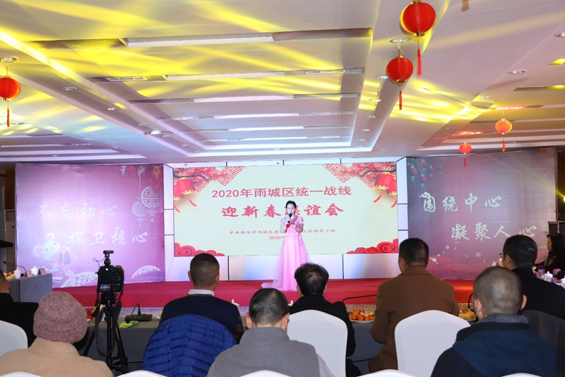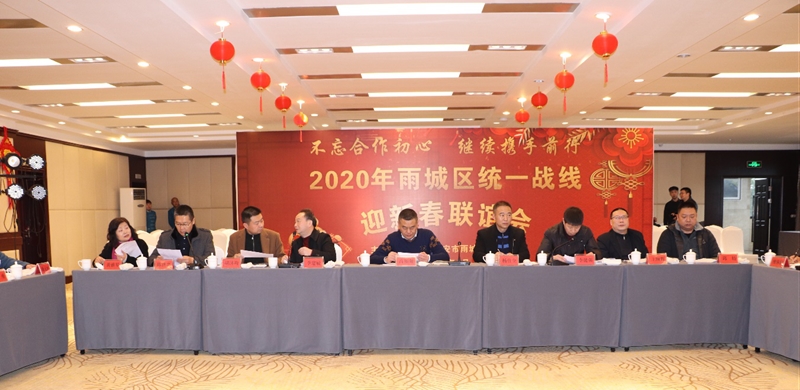 1月15日,由雨城区委统一战线工作领导小组主办的2020年雨城区统一战线迎新春联谊会在倍特星月宾馆举行,来自全区各民主党派、工商联、新联会、知联会、非公有制经济、宗教界等统一战线各界的100余位代表人士欢聚一堂,共迎佳节。