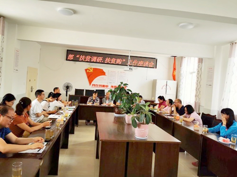 针对调研中发现的问题,民革党员们在楠水村村委召开了扶贫调研、扶贫购、扶贫建言座谈会。大家纷纷献策出力,采取录制视频、转发微信、网络直播等形式,帮助合作社扩大宣传和促进销售。大家还以“以买代扶,以购代捐”的形式购买近万元的产品,通过“消费扶贫”助力该村脱贫攻坚。