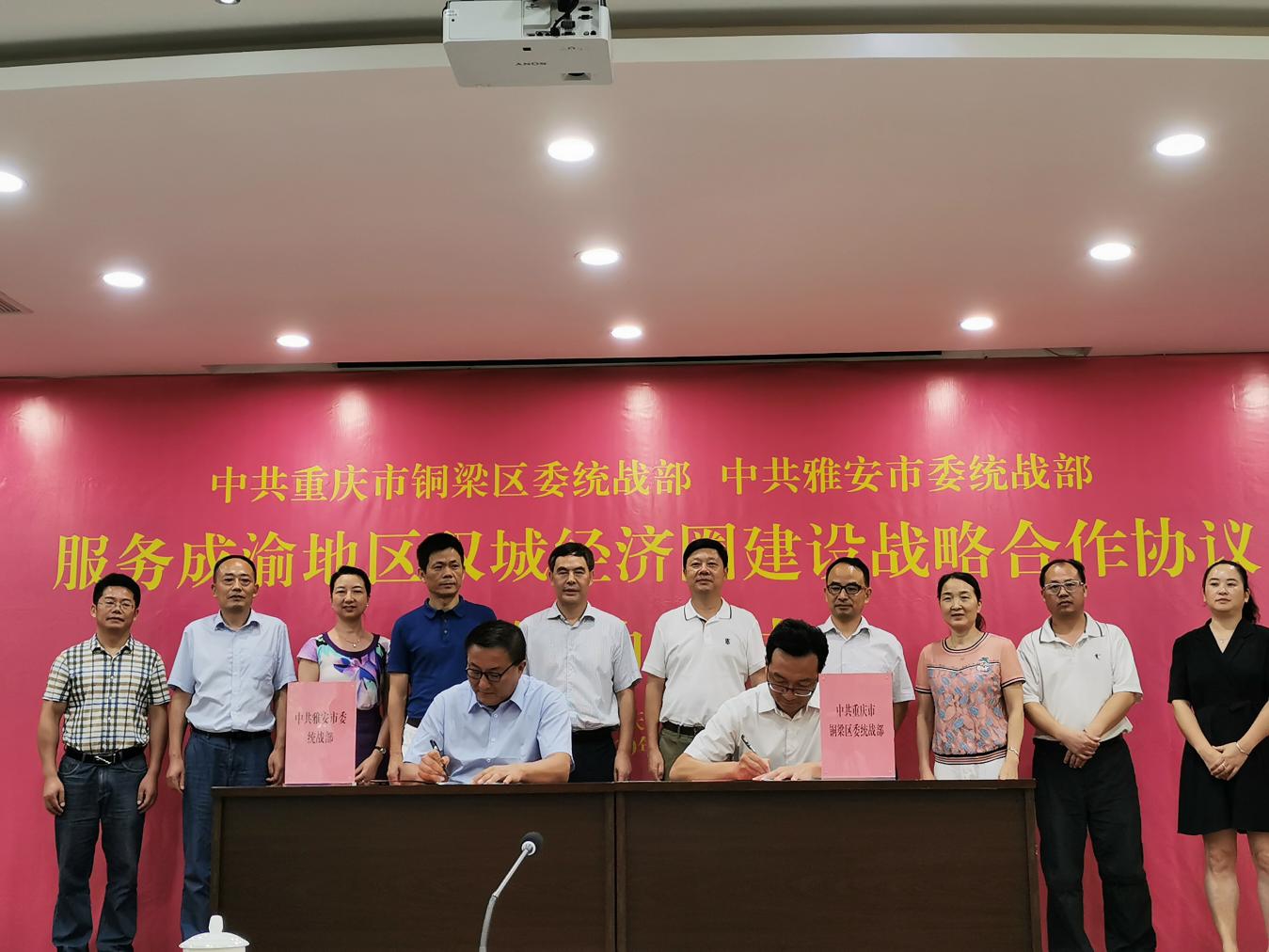 8月3日,雅安市委统战部赴重庆市铜梁区考察,与铜梁区委统战部座谈交流并签订服务成渝地区双城经济圈建设战略合作协议,共同在助力成渝地区双城经济圈建设中,推动两地统战工作“争创一流、走在前列”。