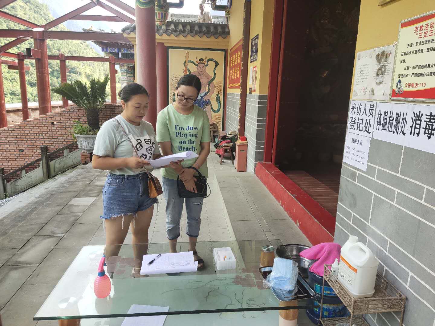 检查组实地察看详细了解寺庙围墙、排水、线路穿管保护、周边山体地质灾害隐情等有关情况,并对宗教活动场所汛期安全管理工作提出明确要求:一是要切实增强责任意识和忧患意识,扎实做好汛期安全工作,深入践行把教职人员和信教群众的生命安全放在第一位的理念;二是场所在汛期和疫情期间暂停一切聚集性宗教活动,做好安全隐患排查、悬挂物清除、排水管疏通等工作,确保场所安全不留死角;三是要密切关注汛情雨情,严格落实24小时值班制度,保持通讯畅通。发现险情,及时疏散人员,第一时间上报县委统战(民宗局)和所在乡镇(社区)。并组织卫健局对永福寺常态化疫情防控工作开展情况进行了评估验收。