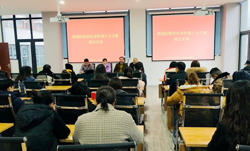 12月4日上午,雨城新联会在雨城区现代服务产业园召开了雨城新的社会阶层人士之家成立大会。区委常委、统战部部长陈洪忠对新阶人士之家的成立表示祝贺,区委统战部副部长胡建军、机关党支部书记王璐,雨城新联会部分理事、雨城区部分民营企业管理人员等参加会议。