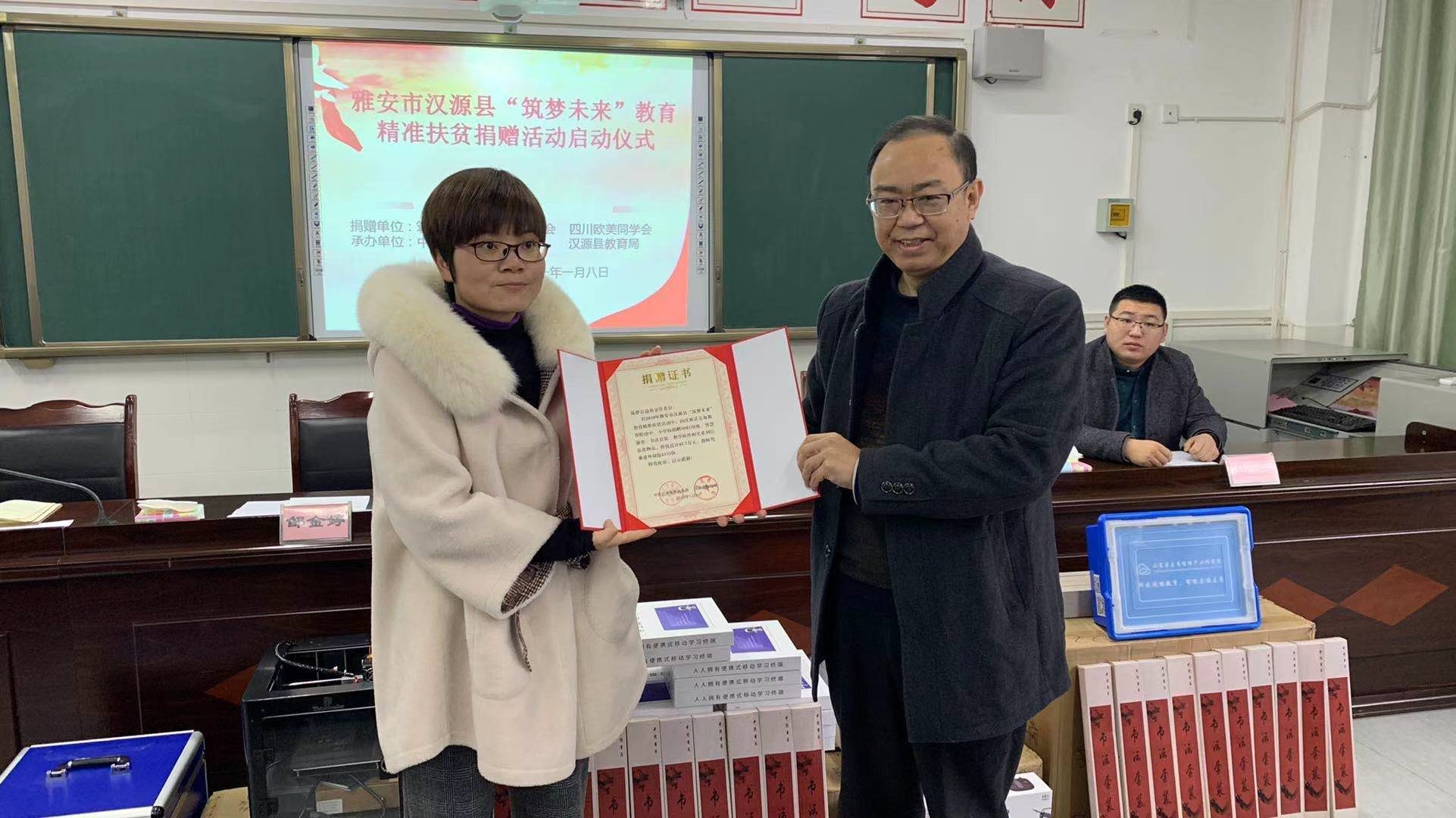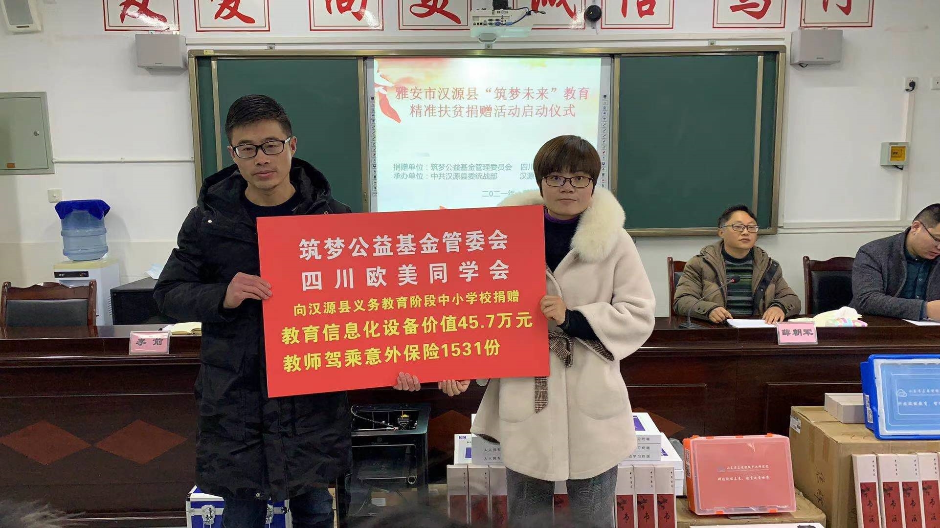 四川欧美同学会协调筑梦公益基金管委会于2019年10月至2021年1月期间,在四川全省范围开展“筑梦未来”助学活动项目,汉源就是其中的一个受助县。向我县义务教育阶段中小学校捐赠“筑梦未来”智慧教室1间、一套3D打印机及首批打印耗材、创意盒子一套;200人以上的中小学校每班捐赠1套教师教学资源软件、(书法班、兴趣班)各捐赠文房四宝25套、教师驾乘意外保险1531份等,总计价值50余万元,帮助农村孩子、留守儿童和农民工子女改善学习条件、激发学习兴趣。帮扶涉及我县29所学校515个班。