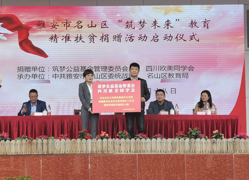 在仪式上,筑梦公益基金管委会、四川欧美同学会共向名山区义务教育阶段32所中小学校捐赠价值35.4万元创客空间3D打印机设备、平板电脑、教学软件、文房四宝和驾乘意外险。这批信息化设备将为我区中小学提升教育信息化基础建设、优化办学条件、提高办学水平提供有力的帮助。