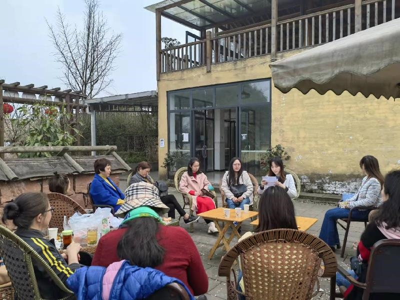 女同志们先后参观了百丈镇解放村基层统战创新实践基地及集“茶科技、茶种植、茶生产、茶旅游、茶文化”为一体的生态文化旅游融合展示综合体。解放村内“花红茶绿”、人流如织, 一派生机盎然,女同志们在知青农庄内就所见所闻进行座谈交流,并集中学习了李酌书记在中共雅安市第五次代表大会上的报告摘要和《家庭教育促进法》部分内容。