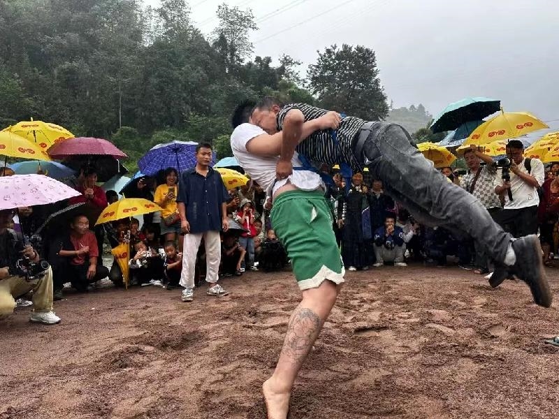 在一轮轮民族团结摔跤比赛中,参赛双方你来我往,厮杀争霸、激烈交锋,场地中不时响起欢呼和喝彩声。