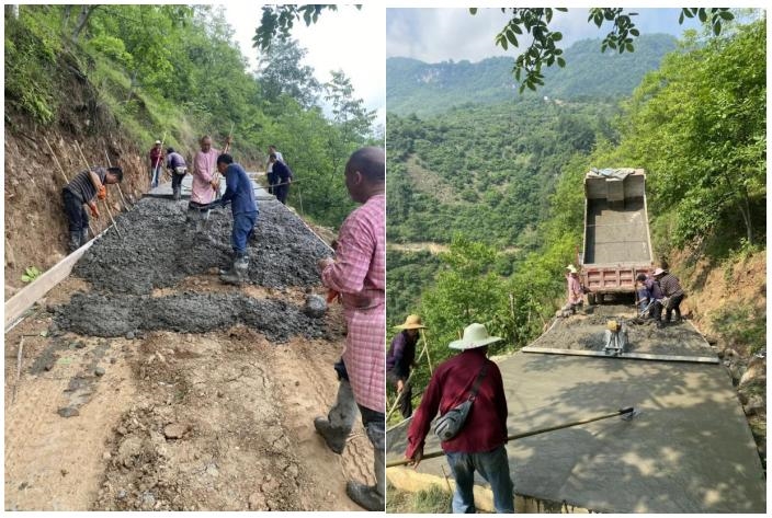 “这条路之前非常糟糕,村民们到地里种庄稼非常不方便,汽车、摩托车、三轮车也不好通过”片马彝族乡万坪村党支部书记丁贵彬说。