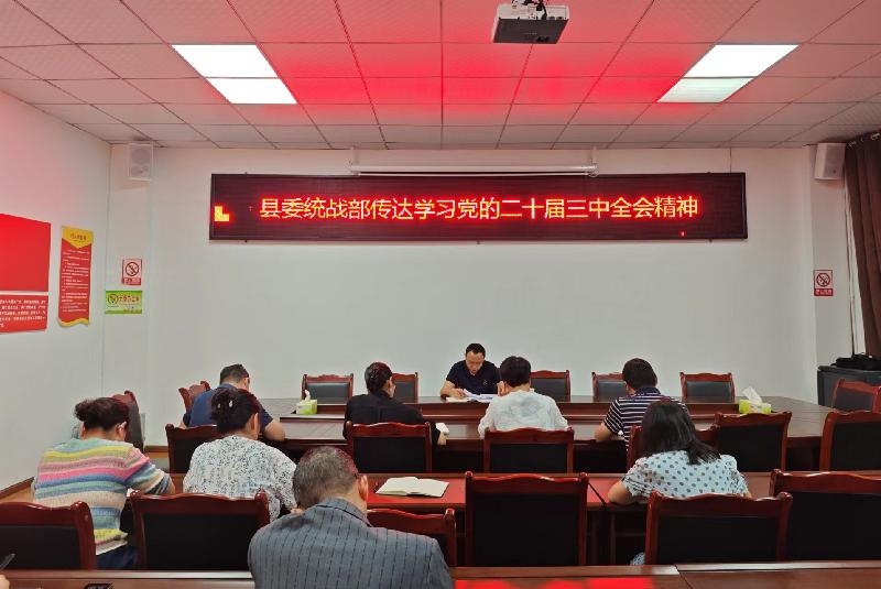 7月29日上午,天全县委统战部召开专题会议,传达学习党的二十届三中全会精神,全体干部职工参加会议。