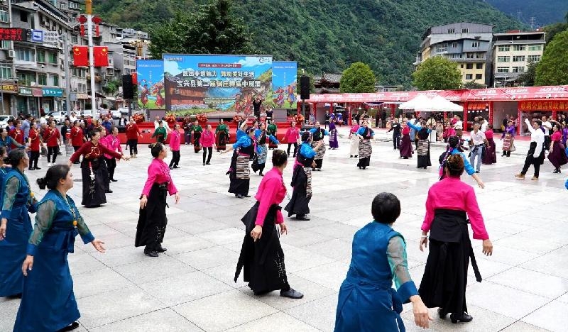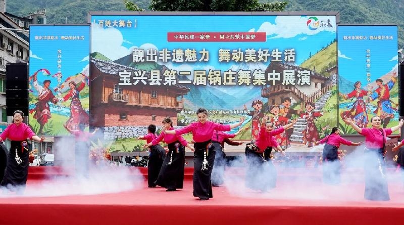 为进一步铸牢中华民族共同体意识,深入推进全市第20个“民族团结进步宣传月”活动。9月29日,以“中华民族一家亲·同心共筑中国梦”为主题,宝兴县第二届锅庄舞集中展演在红军广场开幕。本次活动以“靓出非遗魅力 舞动美好生活”为口号,汇聚来自全县各乡(镇)的12支代表队同台竞演,以省级非物质文化遗产项目——硗碛锅庄为媒,呈现出一场彰显民族团结、展现时代风貌的文化盛宴。