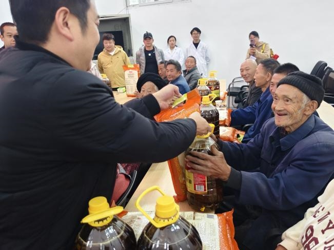 下午,敬老慰问在古路村村委会温情启幕。村负责人现场介绍老人生活状况后,县新联会为全村15名80岁以上的老人送上价值1500元的米、油慰问品,会长企业汉源县源富锌业有限公司还为每位老人送上500元慰问金,共计7500元。会员们与老人拉家常、问冷暖,一句句叮咛、一声声祝福,让重阳佳节暖意融融。