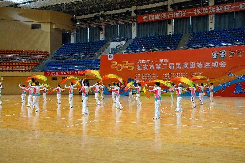 随后,运动员代表古古优威莫,裁判员代表李忠威上台宣誓。精彩的文体表演轮番上演,柔力球表演身姿舒展、刚柔并济,展现了全民健身的蓬勃活力;汉源牛组合带来的歌曲《汉源牛》旋律激昂、歌词质朴,唱出了汉源人民勤劳勇敢、奋发向上的精气神;民族舞蹈《欢迎你》舞姿优美、热情洋溢,传递出雅安儿女好客友善、团结和睦的真挚情感。整场表演充分展现了新时代雅安各族群众牢记嘱托、手足相亲、守望相助、感恩奋进的昂扬风貌。