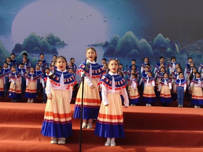汇演在气势恢宏的开场舞《鼓舞欢腾》中拉开帷幕,瞬间点燃全场热情。随后,《红红中国结》《追星》《一路生花》《科技梦》等节目接连登场,精彩不断。整场演出以“铸牢中华民族共同体意识”为主题,分为“驹光溢彩·启新程”“伯乐耘籽·润童心”“驷梦同行·创未来”三个篇章,小演员们全情投入,用舞蹈、朗诵、情景剧把“中华民族一家亲”唱进歌声、舞进旋律、写进台词,生动表达各族师生团结奋进、携手迎新的共同心声。