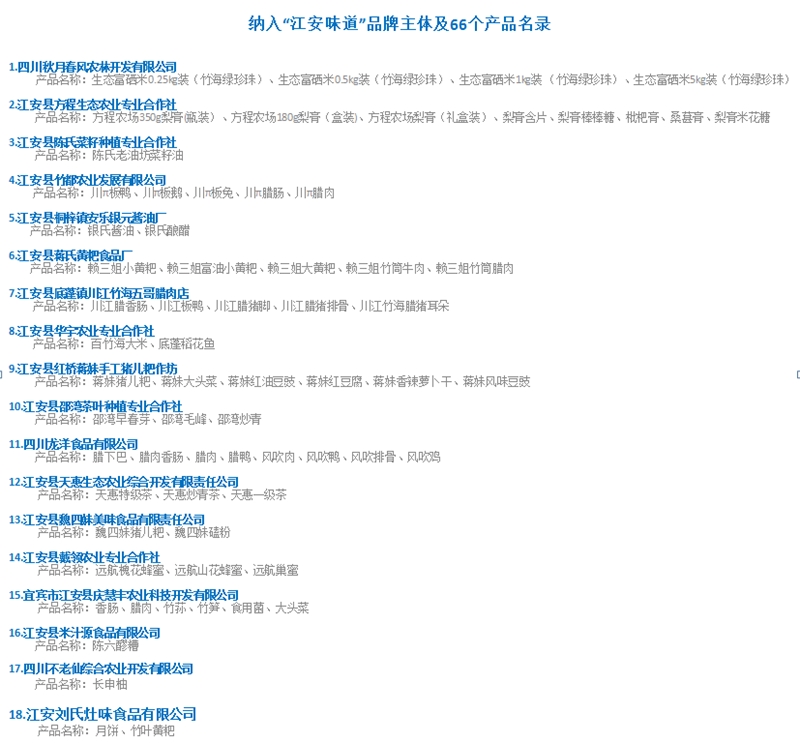 据了解,“江安味道”公用品牌按照“政府主导、市场运作、协会主管、助民增收”原则,现已有18家企业共66个单品被纳入“江安味道”产品序列,此次对接活动的开展将广泛推广“江安味道”公用品牌,全面提升“江安造”产品生命力和竞争力,延长江安特色产品的价值链。