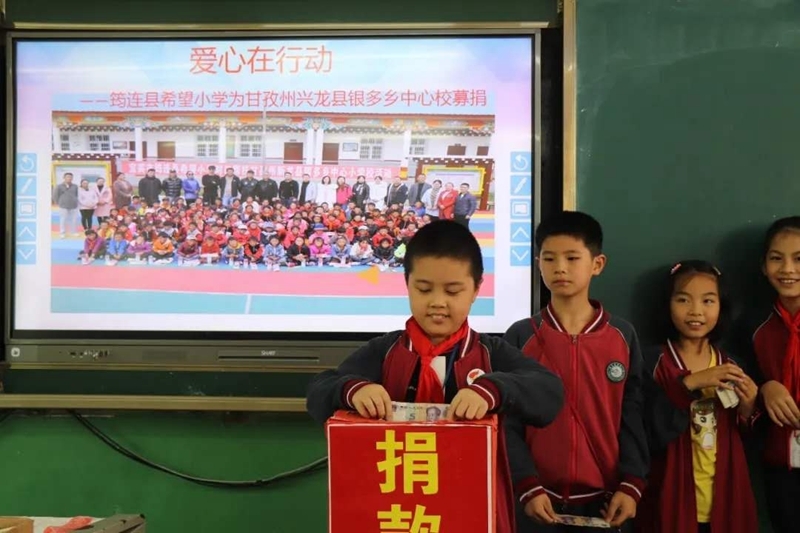 献出一片爱心,托起一份希望。扶贫济困是中华民族的传统美德,助人为乐是社会倡导的时代新风。2020年9月18日下午,筠连县希望小学利用班队课组织全校同学为甘孜州兴龙县银多乡中心校募捐,同学们积极参与,纷纷献上自己的爱心。