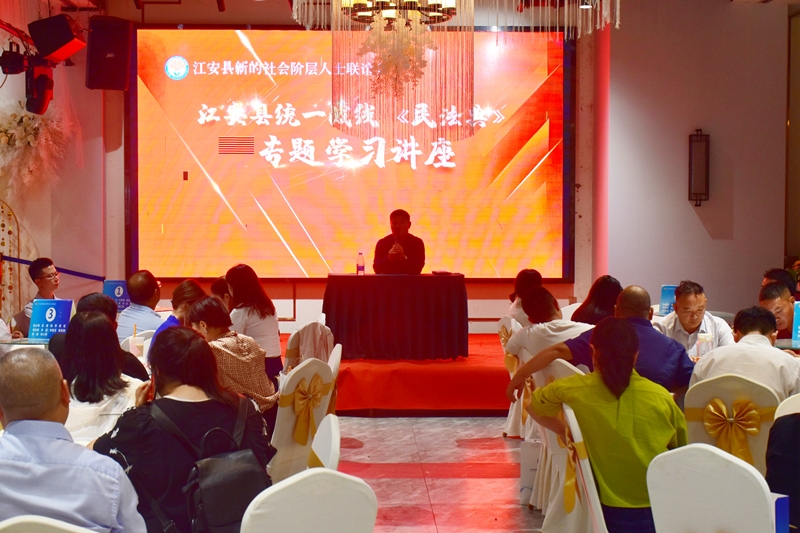 9月24日,江安县统一战线举办《民法典》专题学习讲座。讲座邀请了蜀南律师事务所主任、县新的社会阶层人士联谊会副会长涂建强作专题授课。江安县委常委、统战部部长林红彬出席会议并聆听讲座。县委统战部机关干部、县新的社会阶层人士联谊会全体会员和部分统战成员80余人参加讲座。