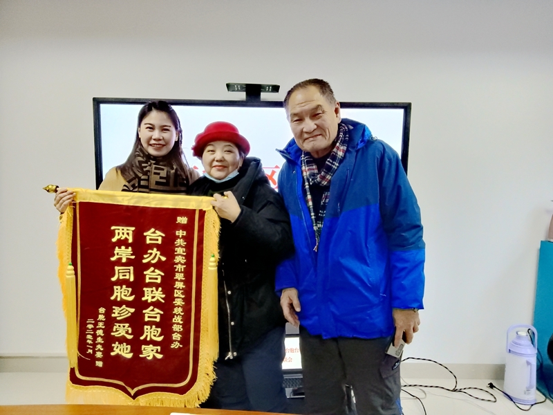 会上,翠屏区常住台胞代表向区台办、区台联赠送了锦旗。会议在全体人员合唱《鼓浪屿之歌》、《我和我的祖国》和《难忘今宵》歌声中圆满结束。