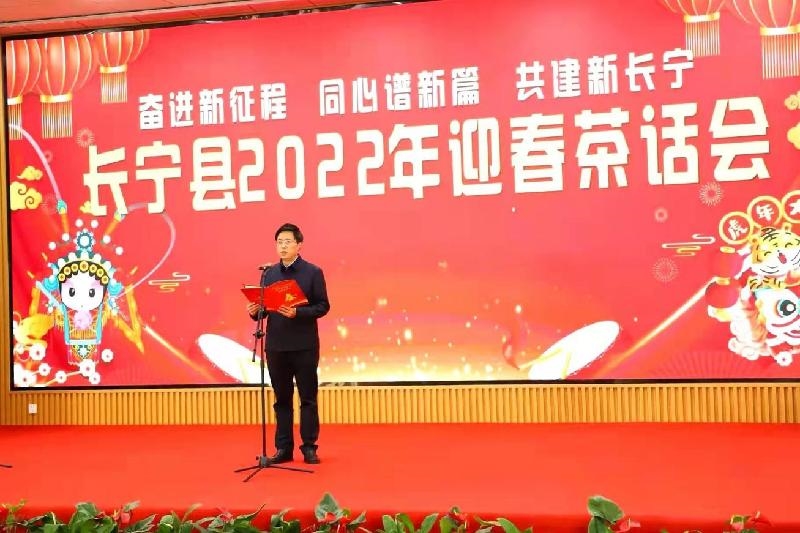 1月28日,长宁县举行以“奋进新征程 同心谱新篇共建新长宁”为主题的2022年迎春茶话会。全县各界代表人士欢聚一堂,共迎新春、共话收获、共谋未来。县委书记刘刚出席并致辞。县委副书记、县长徐创军主持,县人大常委会主任雷佑兴,县政协主席李宏斌,二级巡视员、县委督查委员会常务副主任宋开云,县委副书记陈胜军出席。