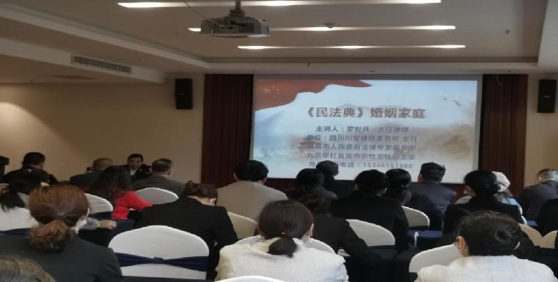 3月31日,《民法典》知识讲座在长宁县金碧酒店四楼会议室举行,四川洪飞建设工程有限公司近100名员工参加培训。此次专题培训是由四川洪飞建设工程有限公司主办,邀请长宁县新联会副会长、四川川安律师事务所主任罗世兵为公司员工作法治辅导,旨在进一步深化公司员工的法治观念、提高法律法规知识水平,推动“八五”普法工作在民营企业走深走实。