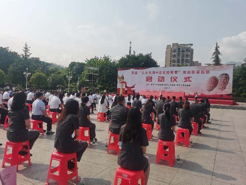 近日,珙县“人大代表+法官检察官”双向联系机制在珙县僰文化广场举行了启动仪式。随后珙县人民法院、珙县人民检察院“人大代表+法官检察官双联工作室”正式挂牌,这标志着珙县人大代表依法履职新平台搭建已完成。与此同时,珙县13个乡镇人大“双联”机制工作站也相继挂牌成立。市人大常委会副主任叶盛及市、县相关部门领导共同启动“双联”机制。县人大机关干部、乡镇人大主席、县人大代表、检察院员额检察官和县法院员额法官200余人参加启动仪式。
