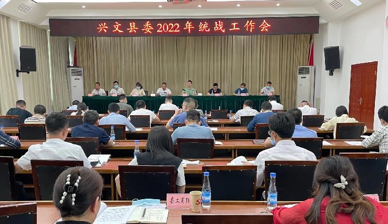 会议指出,2022年是党的二十大召开、是党的统一战线政策提出100周年的关键一年,是省第十二次党代会、世界动力电池大会的召开之年,也是兴文县加快建成人民幸福秀美苗乡的重要一年。全县统战工作要以习近平新时代中国特色社会主义思想为指导,深入学习贯彻中央、省委、市委和县委决策部署,以贯彻落实《中国共产党统一战线工作条例》为主线,坚持“不忘初心、维护核心、服务中心、凝聚人心”工作定位,突出引领方向、服务大局、服务人民、促进和谐、加强建设等重点,主动作为、务实创新,引导全县统一战线凝心聚力服务发展、发挥桥梁纽带作用服务群众,为打造宜宾南向开放桥头堡,建设人民幸福的秀美苗乡贡献智慧力量,以优异成绩迎接党的二十大和省第十二次党代会胜利召开!