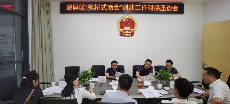 工作对接座谈会上,学习了宜宾市工商联、宜宾市司法局联合印发的《关于开展“枫桥式商会”创建活动的工作方案》,并结合翠屏区实际,对创建活动指导思想、具体内容和标准、方法步骤、考评指标等进行了详细的解读。希望菜坝镇商会能抓住此次创建活动契机,对标对表完善优化,勇争一流提档升级,一举创成“枫桥式商会”,打造基层商会“翠屏样板”,示范引领全区民营经济“两个健康”实践创新。