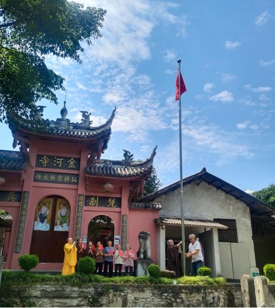 6月30日,兴文县佛教协会组织佛教教职人员、信教群众在大河苗族乡金河寺举行升国旗仪式,喜迎中国共产党成立101周年,祈愿祖国繁荣昌盛、社会和谐稳定、人民幸福吉祥。