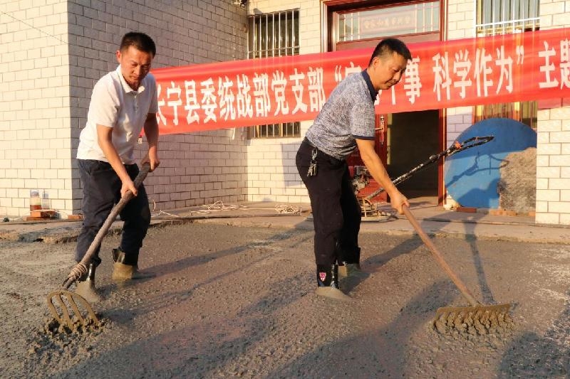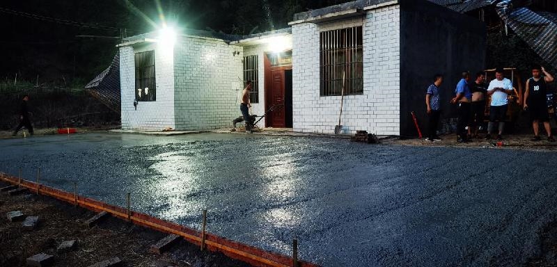 2022年7月14日下午,太阳还未落山,但在长宁县铜鼓镇铜星村4组黄景文家门口,长宁县委统战部常务副部长罗毅及支部书记林健等正顶着高温酷暑,挥舞着耙梳将刚从搅拌车上卸下的混凝土刨平,用实际行动帮民难、解民忧、纾民困。