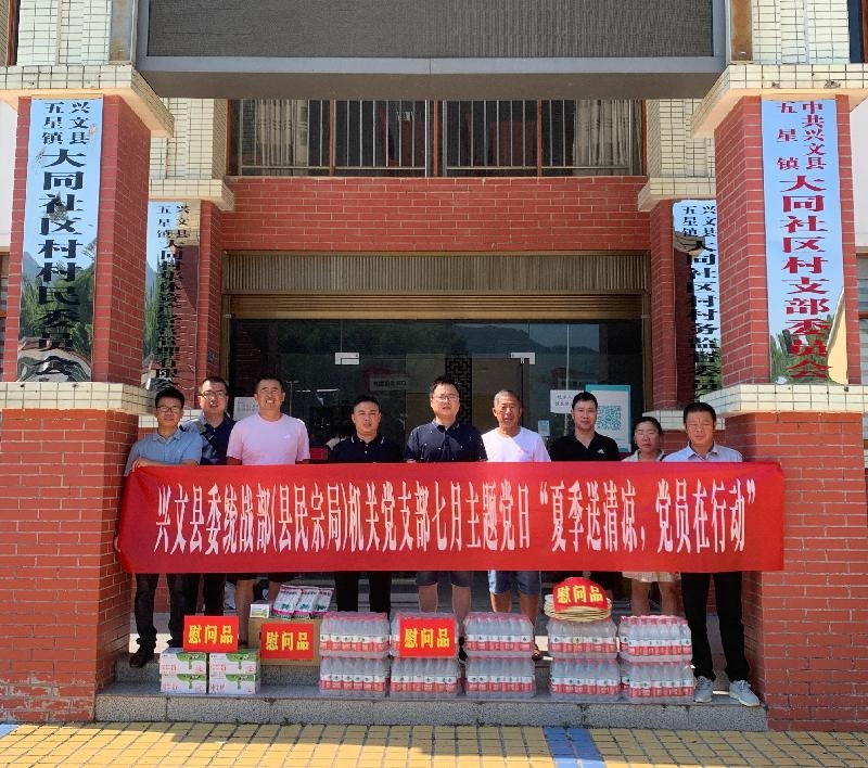 党支部全体党员先后来到五星镇同乐村、大同村,为一线的基层干部送去矿泉水、草帽、藿香正气液等防暑降温物品,叮嘱大家要注重劳逸结合,防止高温中暑,保证身体健康。