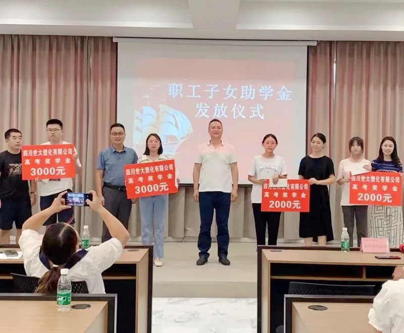 百年大计,教育为本。接下来,四川世大塑化有限公司将持续坚定“为社会创造价值,为员工创造幸福”的理念,每年对优秀的职工子女发放助学金,从多方面入手让职工共享发展成果,切实提升员工的幸福指数。