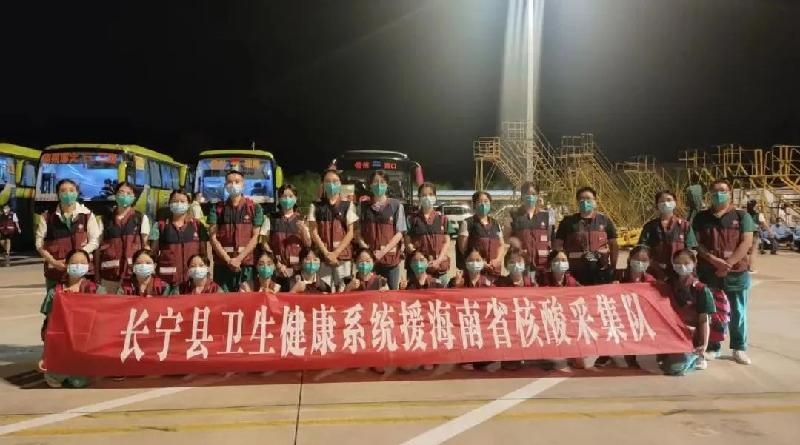 8月12日长宁卫健接到驰援海南命令之后,来自长宁县中医医院和长宁县人民医院的25名党外医护人员主动请命请战,火速集结,勇敢逆行出征。