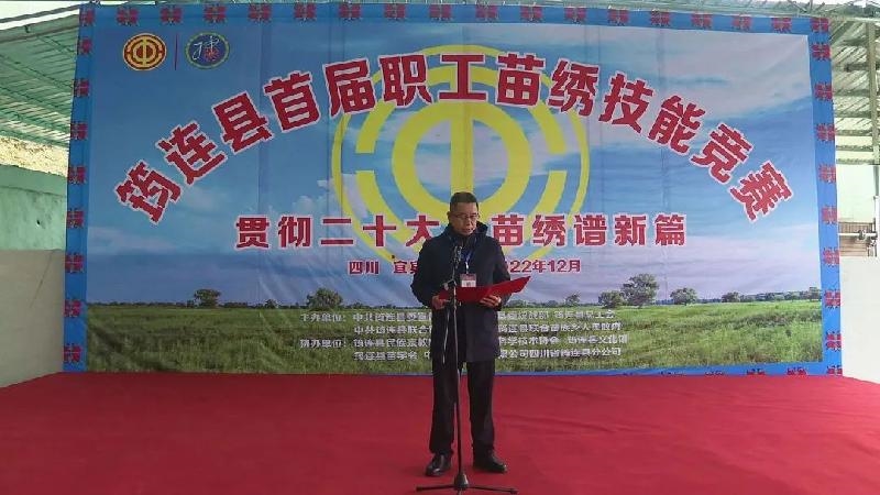 为深入学习贯彻党的二十大精神,着力推进民族团结进步事业,培育筠连苗绣工匠和专业技术人才队伍,带动各族群众通过“巧手”增收致富,为乡村振兴注入强劲活力。近日,“贯彻二十大·苗绣谱新篇”——筠连县首届职工苗绣技能竞赛在筠连县联合苗族乡革新村举行。宜宾市委统战部副部长、市民宗局局长杨学东,市总工会党组成员、副主席景洪伦出席。