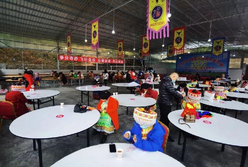 刺绣技能竞赛分为现场手工刺绣技能比拼和刺绣作品展评两部分,在现场手工刺绣技能比拼环节,全县各乡镇的39名选手全神贯注,舞动指尖,飞针走线,各显神通,通过自己的绣花针和彩色细线,在短短的2个小时内,完成刺绣配色,再以不同的针法技艺,展现出一幅幅美丽的作品。