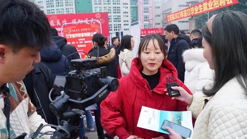 应届毕业生李秋梦告诉记者,今天专门来现场投简历,根据自己的专业选择了广告公司、孵化直播运营。“作为江安人,我还是想回家乡工作,一方面有利于自己的发展,另一方面想为我的家乡做一点贡献。”