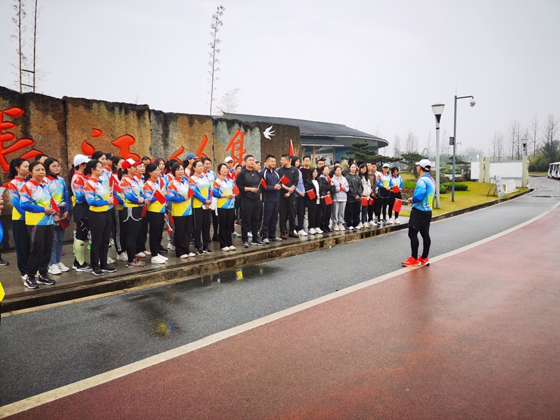 活动开始前,大家进行热身活动,充分舒展身体关节,为健跑做好准备。短暂的热身后,随着指令发出,开跑!大家迈着矫健的步伐,整齐划一的奔跑在赛道上,一路欢声笑语、挥汗如雨,在春色怡人的长江竹岛上,享受着跑步带来的快乐!