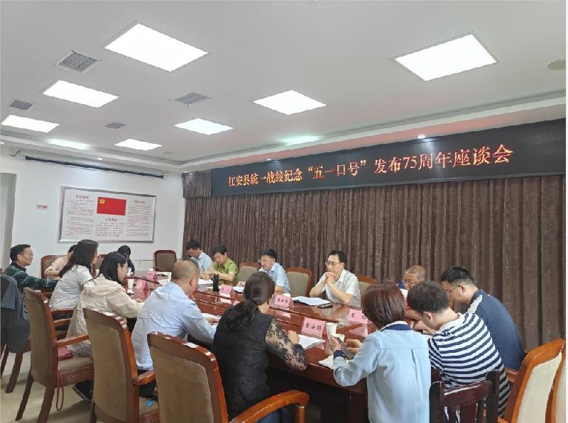 5月5日,江安县统一战线举行纪念中共中央发布“五一口号”75周年座谈会,县委常委、统战部部长曾广出席会议并讲话。