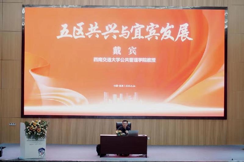 西南交通大学公共管理学院教授戴宾作了题为“五区共兴与宜宾发展”的宜宾大讲堂主题宣讲。