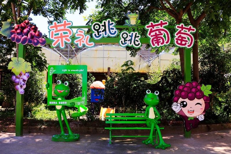 2011年底,在外打拼多年的骆邦萍夫妇决定返乡创业,流转沙河镇凤翔村200余亩土地种植葡萄,总投入超过了130万元。眼看着刚有点起色,2014年7月,一场突如其来的暴雨淹没了整个农场,青蛙全部被冲走,即将上市的葡萄也都烂在地里。“当时我非常绝望,幸好在上级部门和镇党委、政府的关心支持下,我们申请到农业部门的项目资金,重新修建了大棚,完善了排水渠、观光长廊等设施。”骆邦萍介绍道,“在省农科院专家的指导下,我们创立了‘葡萄+青蛙’的立体种养模式,池中养青蛙,池边种葡萄,并且禁农药、禁化肥、施菜枯、人工除草,让生态与有机都能看得见。”据了解,此种立体种养模式不仅能丰富消费者的采摘体验,而且让土地利用率翻番,更是实现亩均收入达到6万元以上。