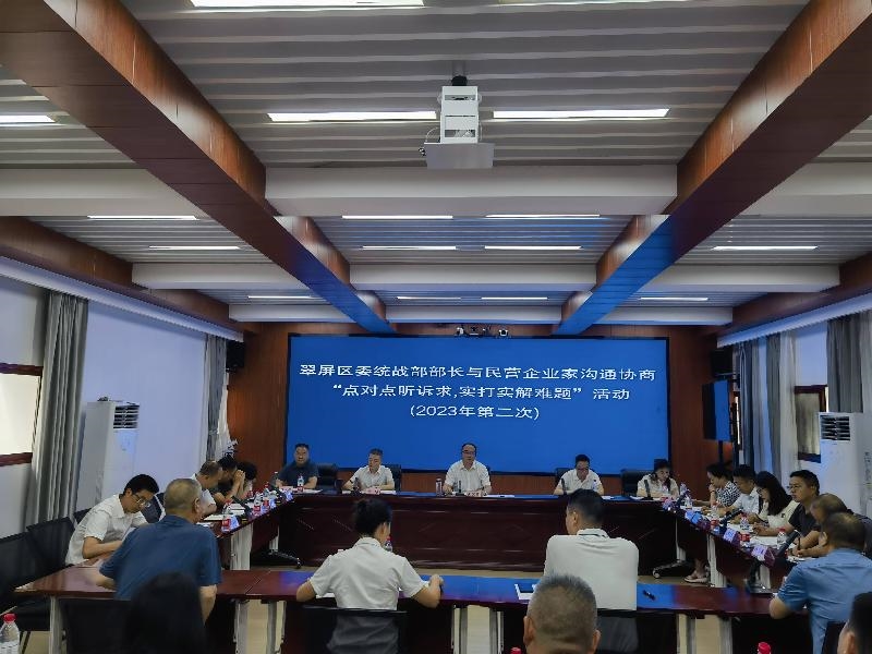 7月20日,翠屏区举行区委统战部部长与民营企业家沟通协商“点对点听诉求,实打实解难题”活动(2023年第二次)。区委常委、统战部部长王渊博出席活动并讲话。