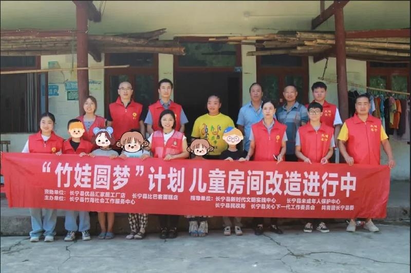 7月22日上午,由长宁县民营企业优品汇家居工厂店、新联会会员企业长宁县比巴客蛋糕店资助的“竹娃圆梦”计划第三期儿童房间改造在双河镇合龙村正式实施,为困难儿童免费打造属于自己的生活屋和学习角。