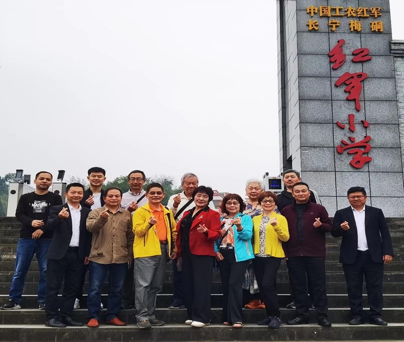 在长宁县梅硐镇红军小学,考察组一行在学校操场观摩了学生课间操活动,纷纷为孩子们展现出的精气神点赞。在“长征书廊”,考察组一行看到了正在专心致致读书的小学生们,被孩子们认真求学的态度所感染。红军学校校长罗强向考察组一行介绍了学校的建设及发展情况。考察组一行还深入学校餐厅、行政办公区域等深入了解学校师生的工作、学习和生活情况。在随后召开的座谈会上,学校负责人向考察组汇报了学校项目策划及建设计划,双方就项目资助有关情况进行了广泛沟通交流,考察组表示将力所能及为学校发展和孩子健康成长给予积极支持。学校考察结束后,双方在红军小学大门口合影留念。最后,考察组一行还前往长宁镇盘村实地察看20年前吴哲儒捐资修建的吴哲儒欣欣小学现状。