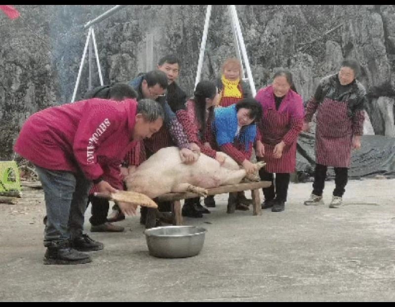 在过去的农村,杀年猪过年是传统的民俗,是一年劳动成果的汇总。家家户户宰杀年猪后,主人家都要煮上一大锅新鲜猪肉来招待亲朋好友,俗称吃“年猪汤”,标志着过年的开始。如今,吃“年猪汤”已经演变成各族群众交流和沟通情感的重要方式,有庆丰年、谢邻里、祈福祉之意。