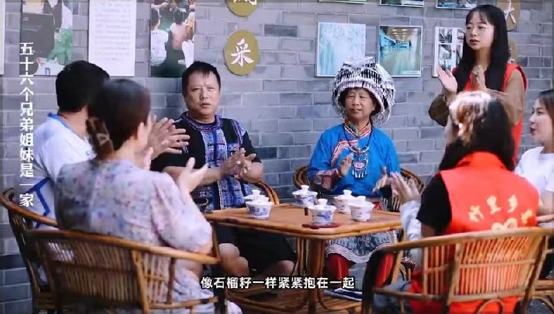 宣讲现场苗族同胞身着民族特色服饰,大家共唱《爱我中华》的民族团结赞歌,将宣讲活动推向高潮,生动绘就出一幅“五十六个兄弟姐妹是一家”的美好画卷。