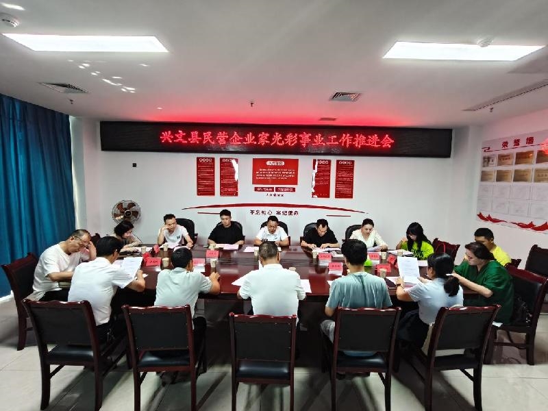 近日,兴文县民营企业家光彩事业工作推进会顺利召开,县工商联、县民政局、古宋镇、光明社区及农特产品行业商会企业参会。